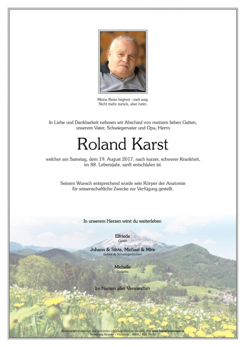 Der SC Rabenstein trauert um Karst Roland. Er verstarb am Samstag den 19. August im 88. Lebensjahr.
