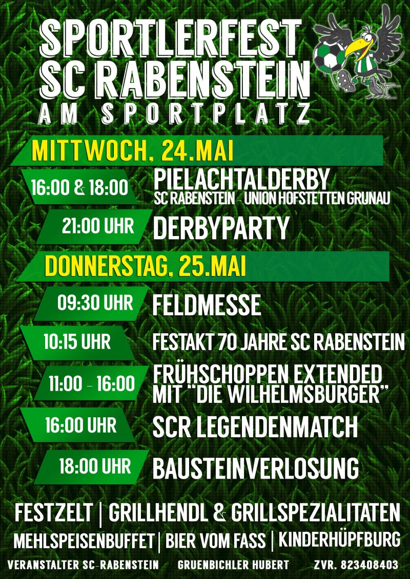 Am Donnerstag feierte der SC Rabenstein im Zuge des jährlichen Sportlerfestes sein 70ig jähriges Bestehen.